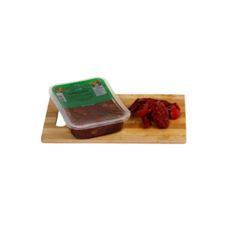 Getrocknete Tomaten in Öl werden in vakuumverpackten 300-g-Schalen verkauft.